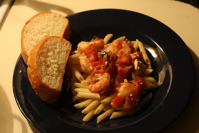 I decided to make something a little different for this episode. Yes, I made shrimp but I decided to add a little bit of an Italian flare (read: make my own basic tomato sauce and throw it over pasta). There was no indication that Italy has had any real effect on the food in Melbourne, Australia in this episode (although I’m sure it has)… but there was a lot of showing many other areas that obviously have had a huge impact. British, Lebanese, and Sichuan influences were highlighted the most. I need some Sichuan food at my next opportunity.