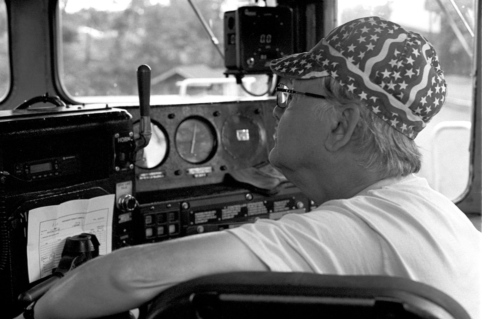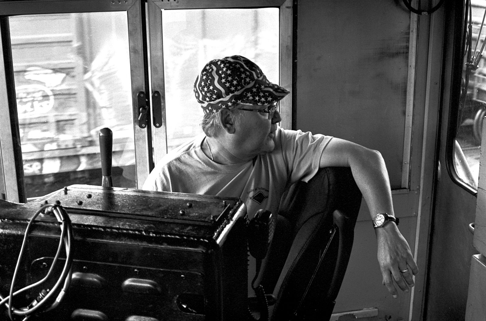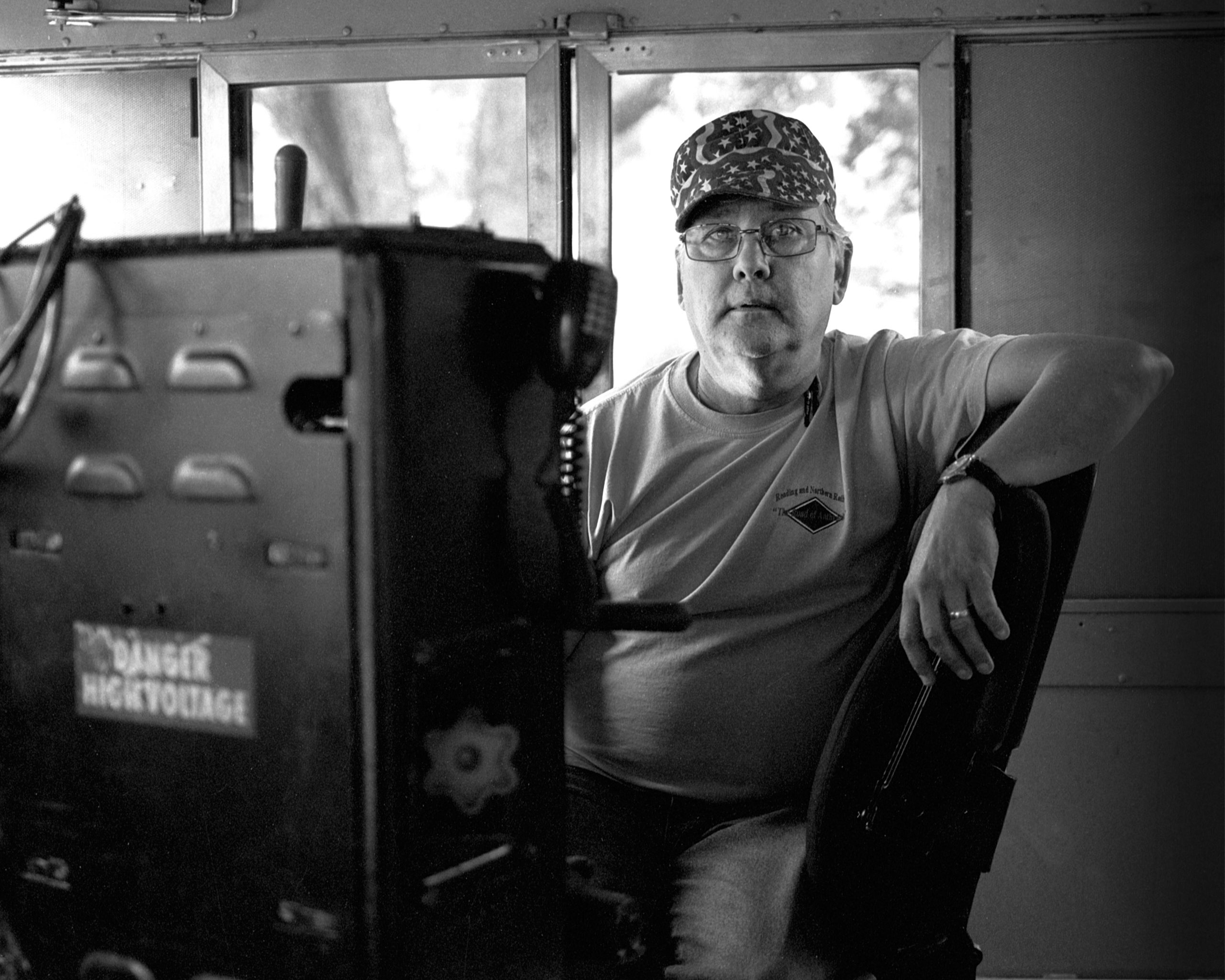 I photographed The Engineer while riding on his moving locomotive. He has been an engineer for decades, moving countless tons of vital material over rail. It was an honor to spend some time with him and see how he works and take his portrait.